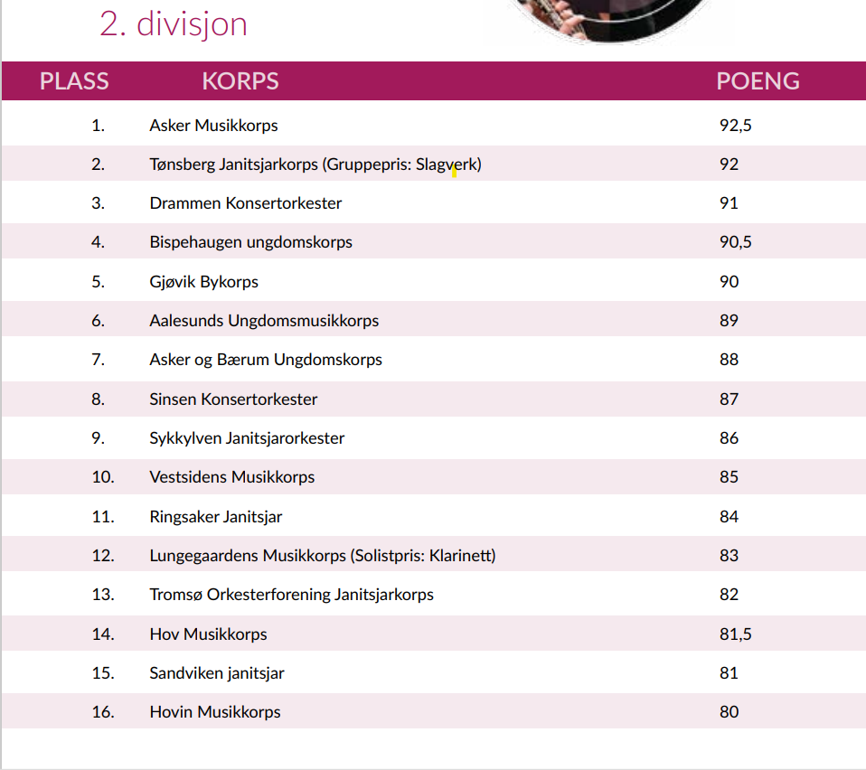 Asker Musikkorps vant annen divisjon, og skal neste år spille i første divisjon i store sal i Olavshallen. Hurra!